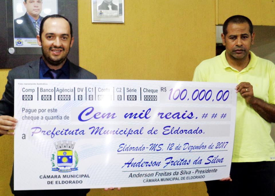 Na noite de Terça-feira dia 12 de Dezembro de 2017 às 19:00 horas, foi realizada Sessão Ordinária da Câmara Municipal. Foi aprovado Projeto de Lei do Executivo Municipal N° 026/2017 que “ESTIMA A RECEITA E FIXA A DESPESA DO MUNICÍPIO DE ELDORADO – MS PARA O EXERCÍCIO FINANCEIRO DE 2018 E DÁ OUTRAS PROVIDÊNCIAS”; Após analisar o referido projeto as Comissões emitiram Parecer de acordo com as Emendas apresentadas;Projeto de Lei do Executivo Municipal N° 025/2017 que “DISPÕE SOBRE O PLANO PLURIANUAL DE GOVERNO DO MUNICÍPIO, PARA O PERÍODO DE 2018 A 2021”; Após analisar o referido projeto as Comissões emitiram Parecer de acordo com as Emendas apresentadas;Projeto de Lei do Executivo Municipal N° 026/2017 que “ESTIMA E FIXA A DESPESA DO MUNICÍPIO DE ELDORADO (MS), PARA O EXERCÍCIO FINANCEIRO DE 2018 E DÁ OUTRAS PROVIDÊNCIAS” Após analisar o referido projeto as Comissões emitiram Parecer de acordo com as Emendas apresentadas; Projeto de Lei Complementar N° 007/2017 ” DISPÕE SOBRE A IMPLANTAÇÃO DA TAXA DE COLETA, TRATAMENTO E DISPOSIÇÃO FINAL DE RESÍDUOS SÓLIDOS DO MUNICÍPIO DE ELDORADO/MS, E DÁ OUTRAS PROVIDÊNCIAS”. Após analisar o referido projeto as Comissões emitiram Parecer de acordo com as Emendas apresentadas; Projeto de Lei do Executivo Municipal N°039/2017 que “AUTORIZA A CESSÃO USO DO IMÓVEL DE PROPRIEDADE DO MUNICÍPIO DE ELDORADO – MS QUE ESPECIFICA E DA OUTRAS PROVIDÊNCIAS”; Após analisar o referido projeto as Comissões emitiram Parecer de acordo com as Emendas apresentadas; Projeto de Lei do Executivo Municipal que “DISPÕE SOBRE PROLONGAMENTOS DA RUA SANTOS DUMONT, REFERENTE AOS TRECHOS IDENTIFICADOS NO LOTE 25,28 E 30, DA QUADRA N°.166” Após analisar as Comissões emitiram Parecer. O Presidente da Câmara Vereador Anderson Freitas da Silva esta devolvendo ao Município a quantia de 100 mil reais, para que esse dinheiro seja aplicado na Fundação de Saúde do nosso Município.
